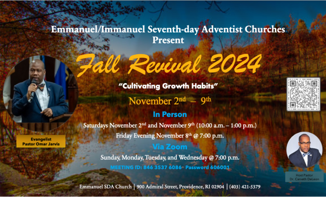 Join us this fall for an inspiring spiritual retreat from November 2 to November 9! This is a fantastic opportunity to immerse yourself in a journey of self-discovery and growth, with Evangelist Pastor Omar Jarvis. Bring a friend along for the adventure, and together, you'll be blessed, inspired, and challenged to cultivate habits that improve your relationship with Jesus and grow in wisdom, strength, and insight. Don't miss out on this transformative experience—it's time to embrace joy and stronger faith connection! Click here to Join on Zoom